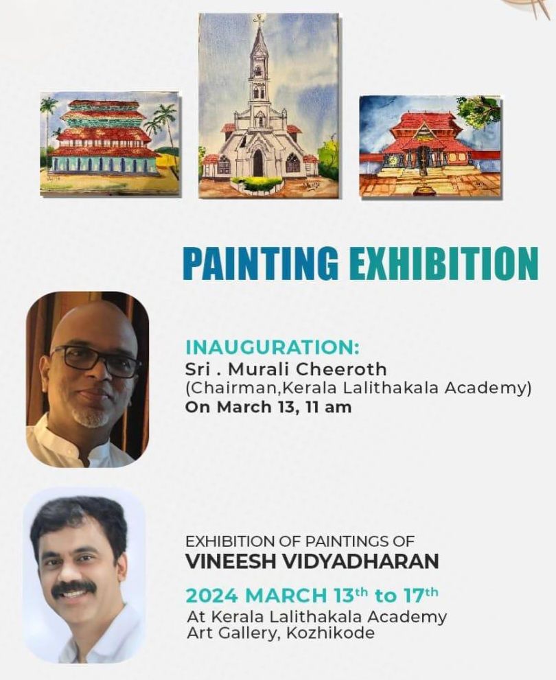 നാളെ രാവിലെ 11 ന് ലളിത കലാ അക്കാദമി ആർട്ട് ഗാലറിയിൽ നടക്കുന്ന ചടങ്ങിൽ അക്കാദമി ചെയർമാൻ മുരളി ചീരോത്ത് ഉദ്ഘാടനം ചെയ്യും. വി ടി മുരളി അധ്യക്ഷത വഹിക്കും.