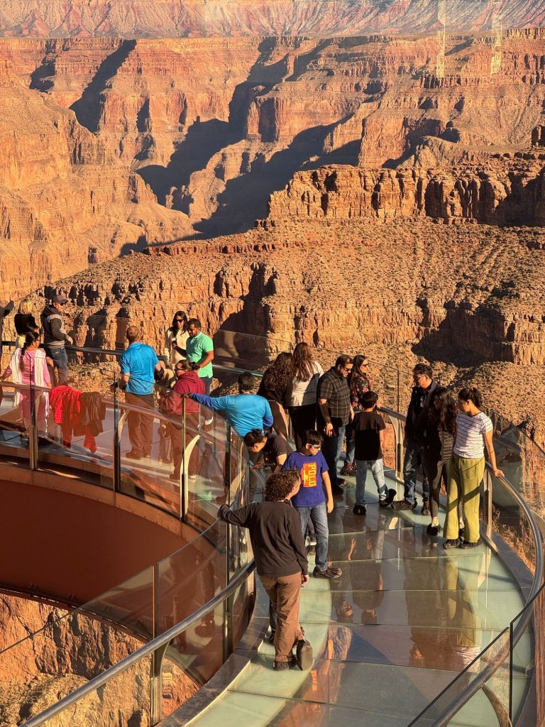 വെസ്റ്റ് റിമ്മിലെ ദർശന കേന്ദ്രത്തിലാണ് ടൂറിസ്റ്റ് പാക്കേജിൽ ഞങ്ങൾ സന്ദർശനം ഏർപ്പാട് ചെയ്തിരുന്നത്. അവിടെ കാറിലെത്തിയിട്ട് ഷട്ടിൽ ബസ് സർവീസിൽ നിരീക്ഷണ സ്റ്റേഷനിലേക്ക്. അതിന് ഓരോ ആൾക്കും 70 ഡോളറാണ് പ്രവേശന ഫീസ്. രാവിലെ ഒൻപത് മുതൽ വൈകുന്നേരം അഞ്ചു മണിവരെ കാണാൻ പോകാം. അതിനിടയിൽ വേണ്ടത്ര സമയം ദൃശ്യകൗതുകം ആസ്വദിക്കാം. “വ്യൂ പോയിൻ്റി “ൽനിന്ന് വിള്ളലിലേക്ക് വഴിഞ്ഞ് വട്ടത്തിൽ പണിത ചില്ലുനടപ്പാത ഉണ്ട്. അതിൽ കയറിയാൽ പാതാളക്കാഴ്ചയിലേക്ക് ഊളിയിട്ടിറങ്ങാം. എന്നാൽ , ഹെലികോപ്റ്റർ റൈഡിന് അര മണിക്കൂറേ അനുവദിക്കൂ. അതിന് ഒരാൾക്ക് 280 ഡോളറാണ് ടിക്കറ്റ് ചാർജ്. (നിലവിൽ ഒരു ഡോളർ 83 ഇന്ത്യൻ രൂപയ്ക്ക് തുല്യം)
