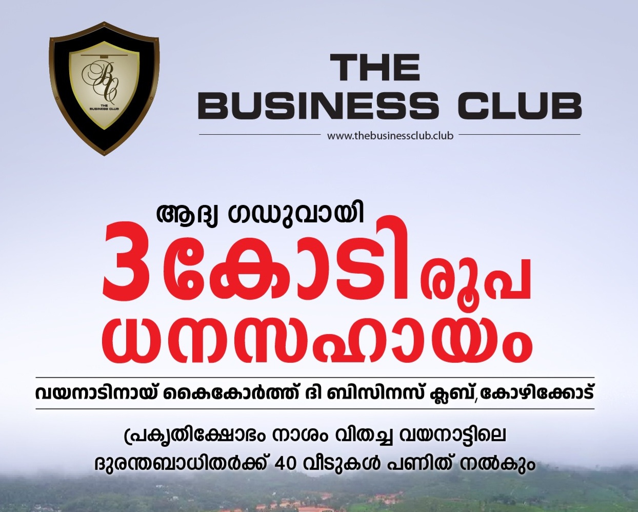 വയനാട് ദുരന്തം: വീട് നിർമിക്കാൻ 3 കോടി വാഗ്ദാനവുമായി ദി ബിസിനസ് ക്ലബ്